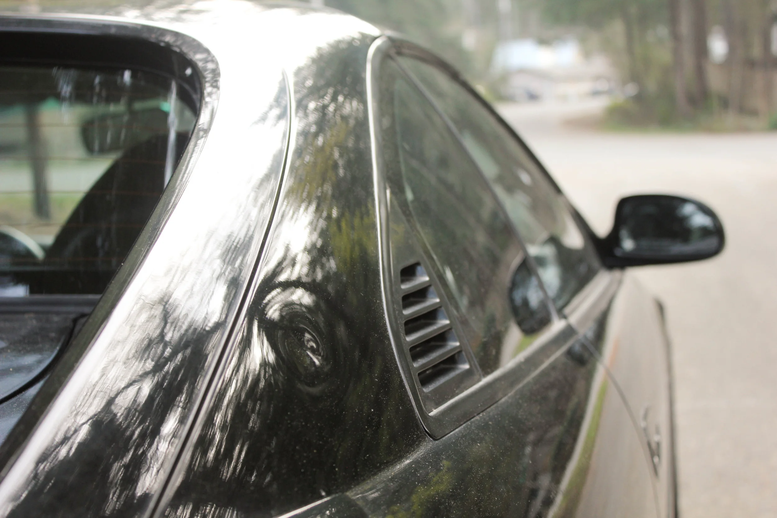 It's not perfect, as any 23 year old car with 160k on it will be. Here's the biggest ding on the body though. A golf ball sized dent from... you guessed it... a golf ball. One of the previous owners was apparently a golfer, and parked his car a little too close.