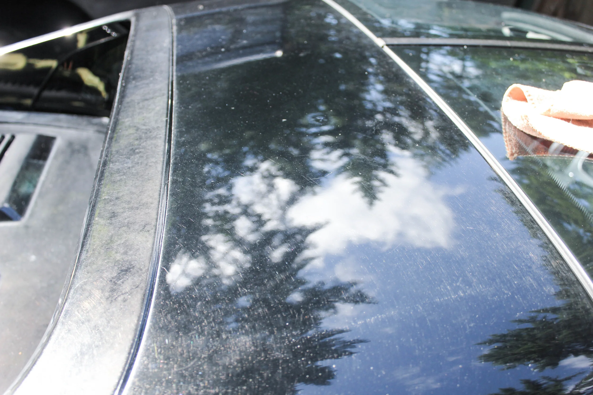 I thought the car was pretty clean when I started, but this was a common sight. The paint felt much smoother after this process, and shed water much better. You could really feel a difference, but it didn't look that much better. So time to bring out the big guns, let's polish this turd.