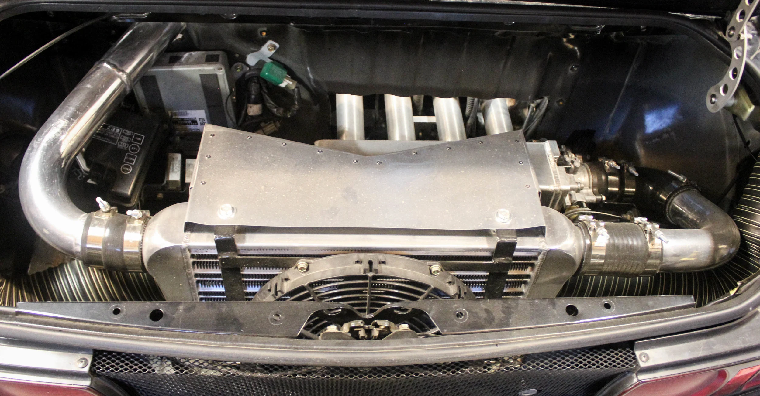 The intercooler setup came out pretty quickly, within 30 minutes. Then the ECU and wiring was carefully pulled.