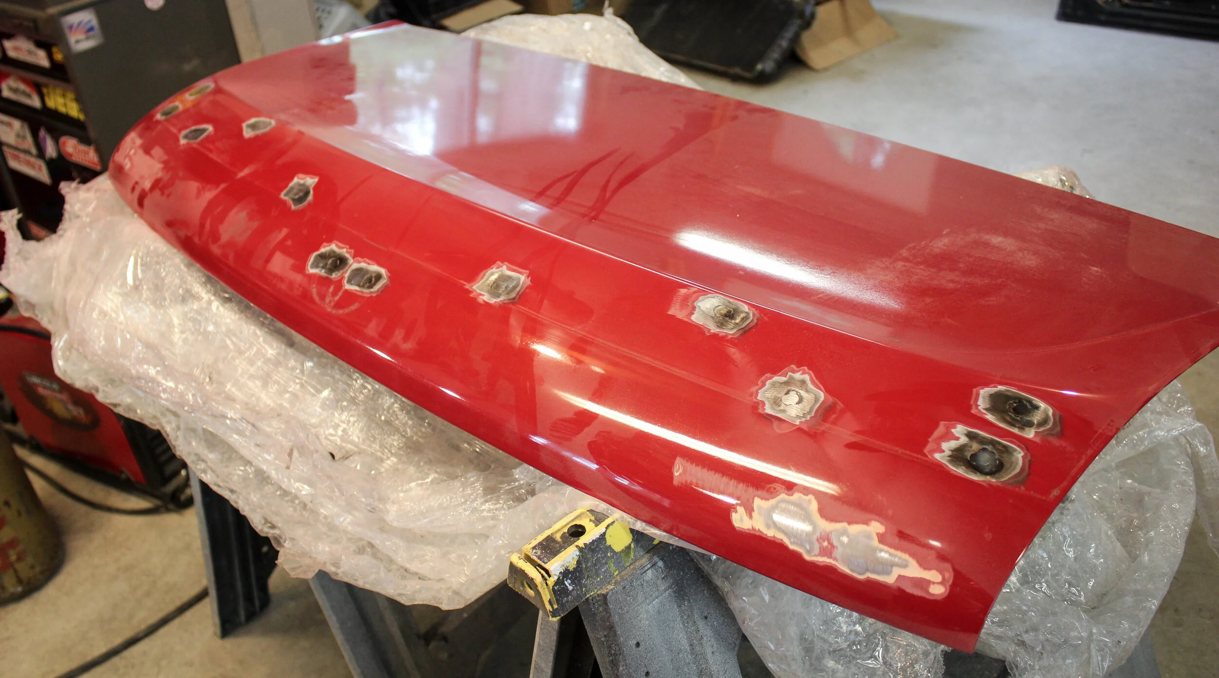 Time to give the welded holes a little bit of filler, and prep the rest of the trunklid.